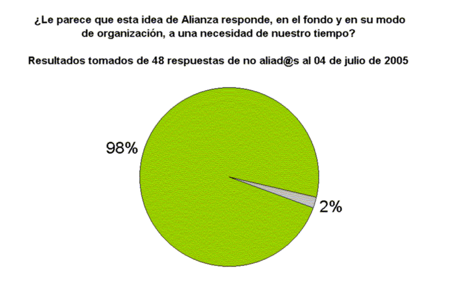 Las muy pocas respuestas plantean preguntas y la problemática de la representatividad. Un punto de vista externo no puede considerar esta problemática equiponderando cada respuesta y cada silencio a priori. Sería probablemente necesario ponderar estas respuestas y faltas de respuestas en términos de los lazos que unen a las personas solicitadas a la Alianza y del nivel de implicación (intensidad, anterioridad) de éstos en el proceso/proyecto colectivo que es la Alianza. Sin embargo, todavía están llegando nuevas respuestas. En vista de la inercia del proceso de consulta, podemos esperar un total de unos centenares de respuestas en septiembre. Se podría ver este informe entonces como informe de medio camino. Siguen citas que ilustran esta síntesis. Se han escogido por su expresión de un sentimiento compartido y como suficientemente representativas de consideraciones que se han expresado más allá del muy grande "sí al proyecto". 2 - Aprobación del Proyecto La idea de la Alianza y el proyecto para una Carta está en profundo acuerdo con la percepción de los participantes. Extractos... Sobre las motivaciones de la FPH: "... la voluntad de tomar en serio lo que cada uno aporta, y organizar su memoria, su capitalización y su restitución hace de la Fundación un instrumento irremplazable..." (traducido del francés) Sobre la pertinencia de la Alianza: "... Sí, pues la complejidad del mundo de ahora requiere una acción coherente y colectiva..." (del inglés) O aún: "... Establecer una comunicación permanente con todas las asociaciones que tengan las mismas finalidades..." (del francés) Sobre la Carta: "... Contiene y representa los fundamentos necesarios a la sana prologación de las actividades, de las utopias, de los sueños comunes que hay que lanzar dentro de la realidad para construir mañanas sensatos, razonables, sostenibles, plurales..." (del francés) Las voces y los corazones hablan en unísono para expresar la necesidad y la emergencia de juntarse, interconectarse y trabajar juntos para la emergencia de alternativas a la evolución del mundo. Las respuestas muestran cuánto la constatación, el rechazo y la convicción mencionadas en el párrafo "objetivos de la Alianza" del texto de la Carta, sobre las cuales se sostiene el compromiso de los aliados, corresponden a la constatación, el rechazo y la convicción de los participantes. La misma convergencia se da respecto a la naturaleza de la Alianza. De los siete aspectos que describen la Alianza, cinco coinciden exactamente con los propósitos de aliados y amigos. Solamente los puntos que tienen que ver, por un lado, con la visión de la comunidad mundial que hay que construir, y por otro, con el sitio web como matriz o centro neurálgico de la Alianza, han sido discutidos (ver párrafo siguiente). 3 - Lo que se disputa "... Creo que la gran justificación de la Alianza es que existe hoy un ’ciudadano del mundo’ que puede influir, como tal, en el destino de la humanidad. Toda la cuestión es saber CÓMO..." (del francés). Esta cita de una respuesta resume perfectamente el debate que la consulta ha revelado: aunque haya acuerdo casi total sobre el POR QUÉ, los aliados no están de acuerdo sobre el CÓMO. 3.1 - La iniciativa de proyecto de Carta Como la consulta trata del contenido de la Carta, debemos notar primero que hay dos opiniones opuestas sobre el asunto. Un punto de vista expresa discordancias, incomprensión, y dudas que revelan e ilustran con mayor o menor intensidad las "contradicciones concretas que la Alianza ha de superar al final de la primera etapa" (párrafo 4 del documento que describe la posición de la FPH). Este punto de vista parece expresar que los arbitrios y/o innovaciones propuestas por la Carta para resolver estas contradicciones no responden a las expectativas de los participantes: "... la FPH no parece aprovechar las tensiones nacidas en el pasado sobre la gobernanza de la Alianza. La Carta Constitutiva es un documento que se presenta como para tomarla o dejarla; cuando se podría concebirla como documento de partida de un movimiento..." (del francés). Del lado opuesto, tenemos: "... Tengo que decir que esta Carta Constitutiva es un buen esfuerzo e incorpora varias sugerencias hechas en Mumbai y Porto Alegre..." (del inglés). 3.2 - Relaciones entre la FPH y la Alianza Un participante piensa que las modalidades de trabajo "... deberían distinguir lo que depende de la gobernanza de la Alianza de lo que es del ’programa de trabajo’ de los aliados..." (del francés). También se expresa esta confusión sentida en las discordancias y sus argumentos correspondientes: es perceptible la tensión generada por la dificultad de plantear correctamente la ecuación gobernanza-organización-decisión-programa. Esta confusión parece venir de la relación que une la FPH con la Alianza. Para muchos participantes, no se disocian la FPH y la Alianza. La FPH tiene una posición única de Aliado y un poder particular: poder "de" para algunos, poder "sobre" para otros. Financiador y madre de la Alianza es lo que es la FPH. También es (y desea ser) independiente y soberana. Esto se entiende bien, nadie parece ignorar su auto-definición en la página de incio de su sitio web: "Una fundación independiente que apoya la emergencia de una comunidad mundial". Pero esto plantea un problema para los Aliados cuyos objetivos, misiones, y deseos de opciones estratégicas no corresponden a las preocupaciones y orientaciones de la fundación. Algunos participantes esperan de la Alianza que sea no sólo un lugar para compartir y un pool de ideas, pero también una herramienta de apoyo (incluyendo financiero) para los Aliados implicados en acciones, lo que se refiere al deseo de apoyo a proyectos específicos temática y geoculturalmente circunscritos. Todos entendemos que las tensiones existentes están íntimamente relacionadas con la posición (apoyada o discutida) de la fundación "... que permanece c